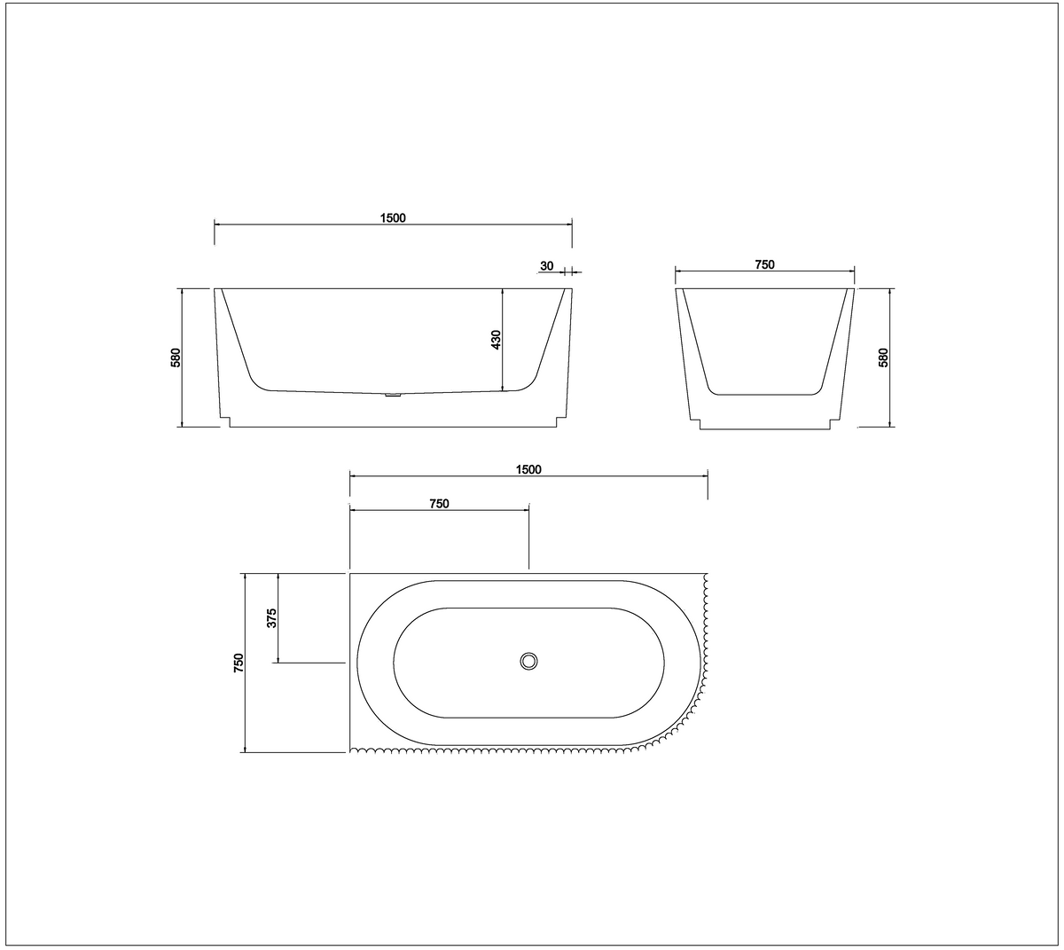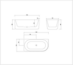 1500MM FLUTED LEFT CORNER BATH TUB