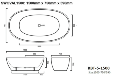 RBK-KBT-5 – 1500 Fully Matte Black Bathtub